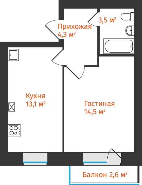 Новая 1-комнатная квартира в ЖК Норские резиденции на 1 этаже площадью 36.19 м² в 2 подъезде номер 19