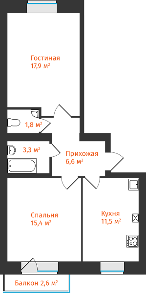 Новая 2-комнатная квартира в ЖК Норские резиденции на 4 этаже площадью 57.38 м² в 3 подъезде номер 41