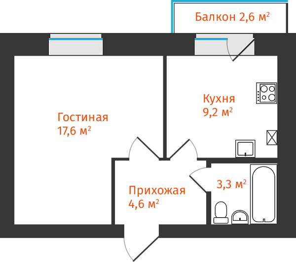 Новая 1-комнатная квартира в ЖК Норские резиденции на 1 этаже площадью 35.63 м² в 2 подъезде номер 23