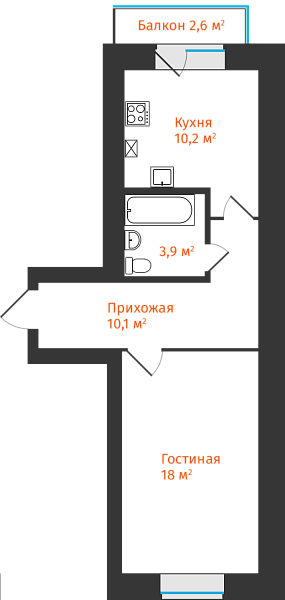 1-комнатная, 43.17м²