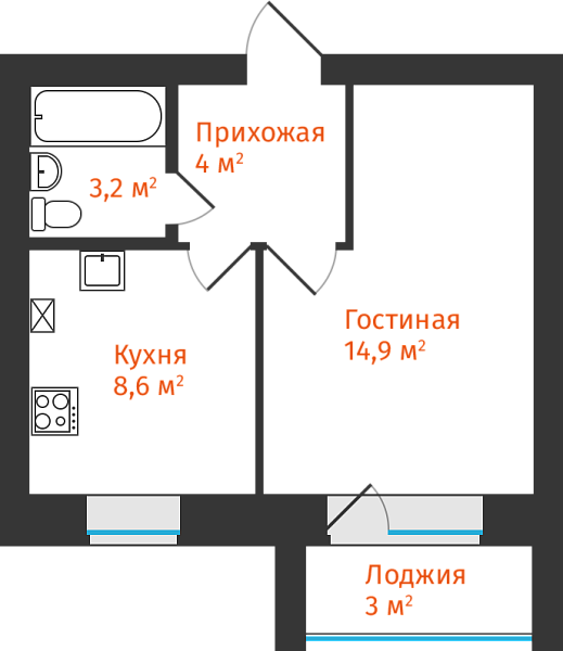 1-комнатная, 32.33м²