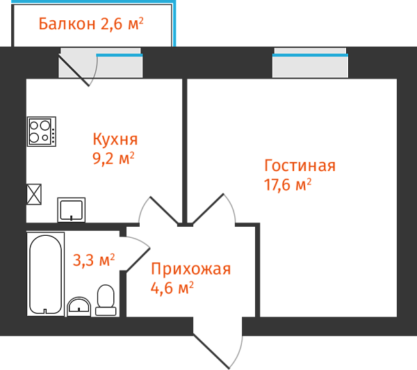 Новая 1-комнатная квартира в ЖК Норские резиденции на 3 этаже площадью 35.63 м² в 1 подъезде номер 13