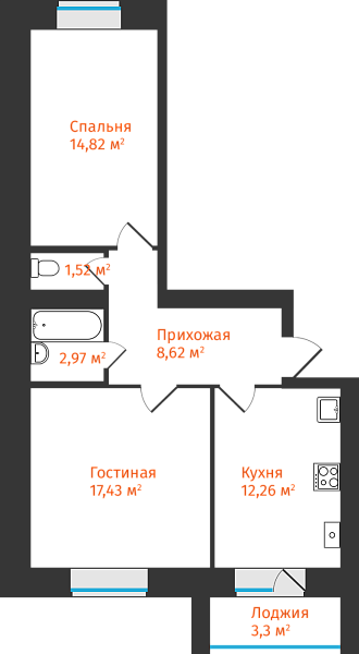 2-комнатная, 59.27м²