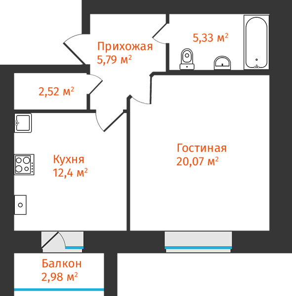 Новая 1-комнатная квартира в ЖК Норские резиденции на 1 этаже площадью 47.60 м² в 2 подъезде номер 29