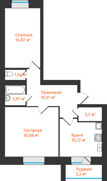 Новая 2-комнатная квартира в ЖК Норские резиденции на 5 этаже площадью 63.17 м² в 2 подъезде номер 37