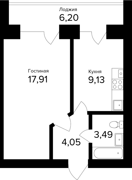 Новая 1-комнатная квартира в ЖК Норские резиденции на 2 этаже площадью 37.68 м² в 3 подъезде номер 46