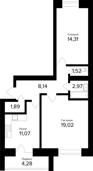 2-комнатная, 61.06м²