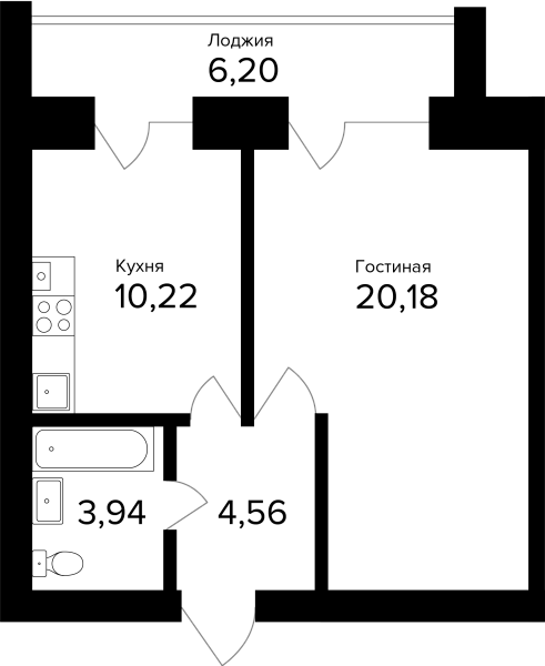 Новая 1-комнатная квартира в ЖК Норские резиденции на 5 этаже площадью 42.00 м² в 2 подъезде номер 39