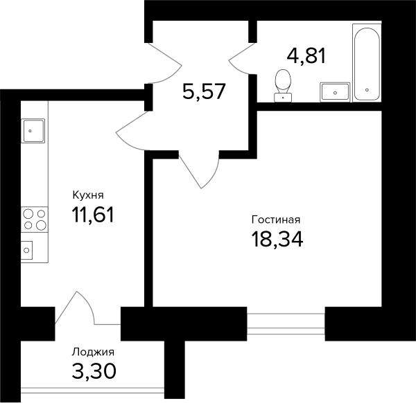Новая 1-комнатная квартира в ЖК Норские резиденции на 3 этаже площадью 41.98 м² в 4 подъезде номер 54