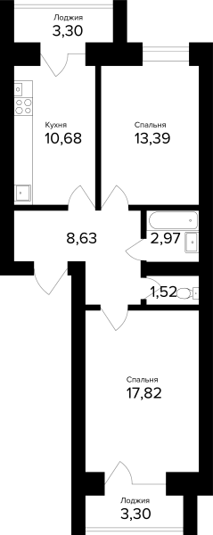 2-комнатная, 58.31м²
