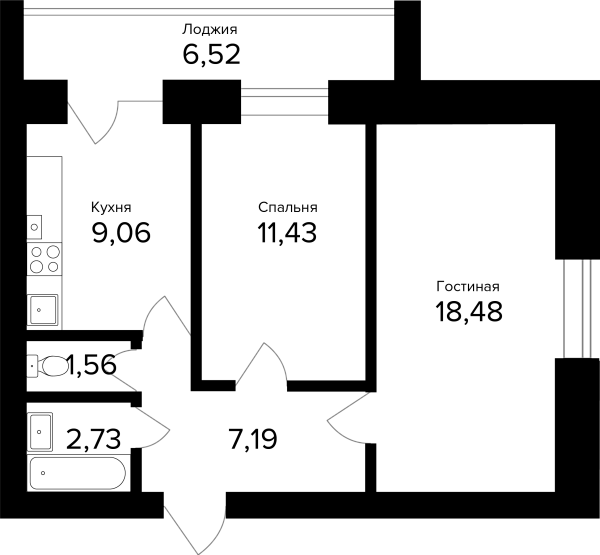 Новая 2-комнатная квартира в ЖК Норские резиденции на 4 этаже площадью 53.71 м² в 4 подъезде номер 56