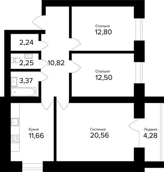 Новая 3-комнатная квартира в ЖК Норские резиденции на 4 этаже площадью 78.34 м² в 4 подъезде номер 76