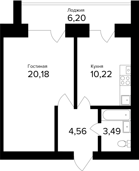 1-комнатная, 42м²