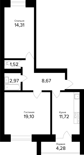 2-комнатная, 60.43м²