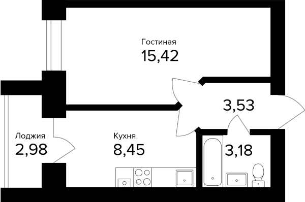 1-комнатная, 32.07м²
