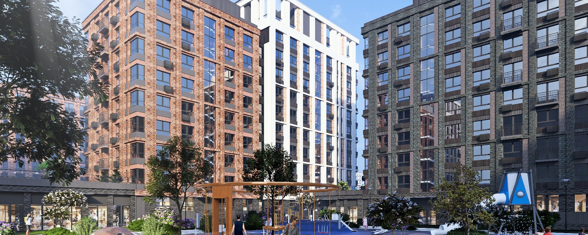 На первых этажах — кофейни и уютные магазинчики. Просторные парковки и подземные паркинги. Дворы без машин, с детскими и спортивными площадками.