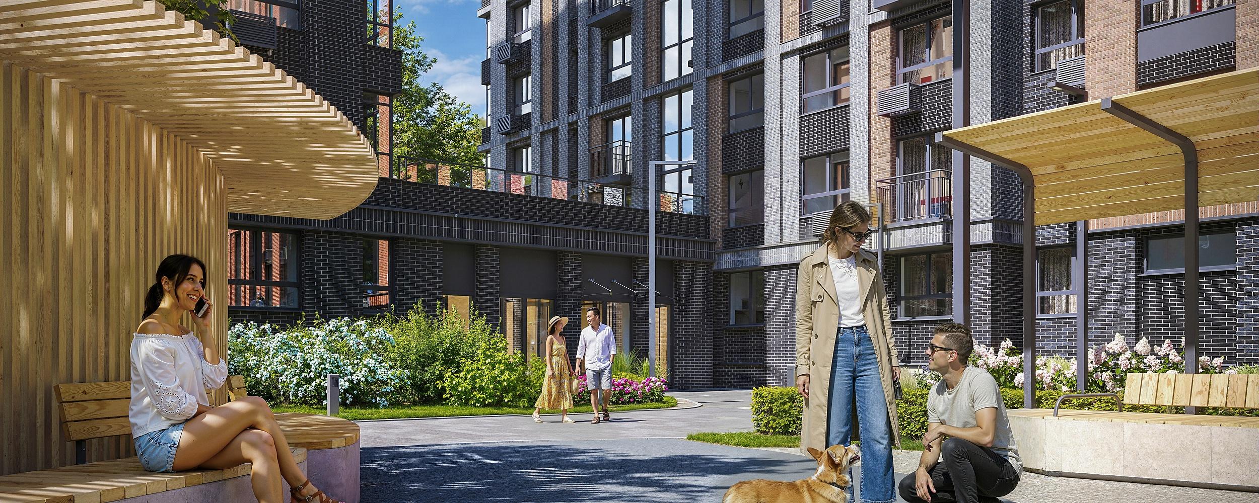 Уютные квартиры с отдельным входом и собственным двориком-патио. Зеленая изгородь, мягкая подсветка, пара кресел и чашка ароматного чая — чтобы почувствовать себя в загородном доме, оставаясь в центре событий