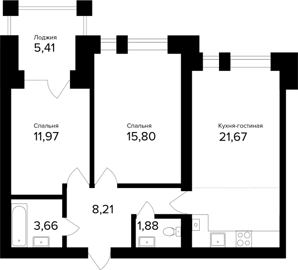 2-комнатная, 65.93м²