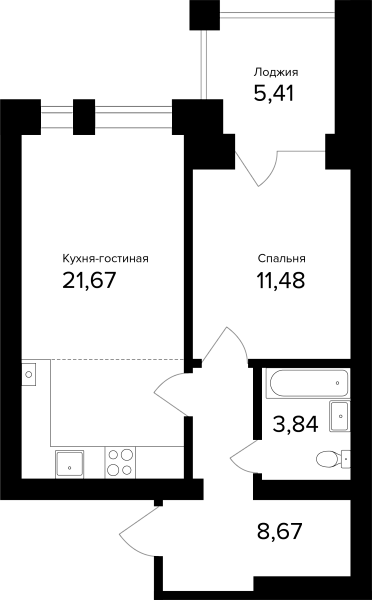 Новая 1-комнатная квартира в ЖК Волга Life резиденции на 2 этаже площадью 48.37 м² в 2 подъезде номер 47