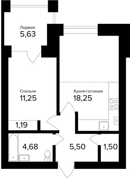 Новая 1-комнатная квартира в ЖК Волга Life резиденции на 1 этаже площадью 45.19 м² в 2 подъезде номер 40